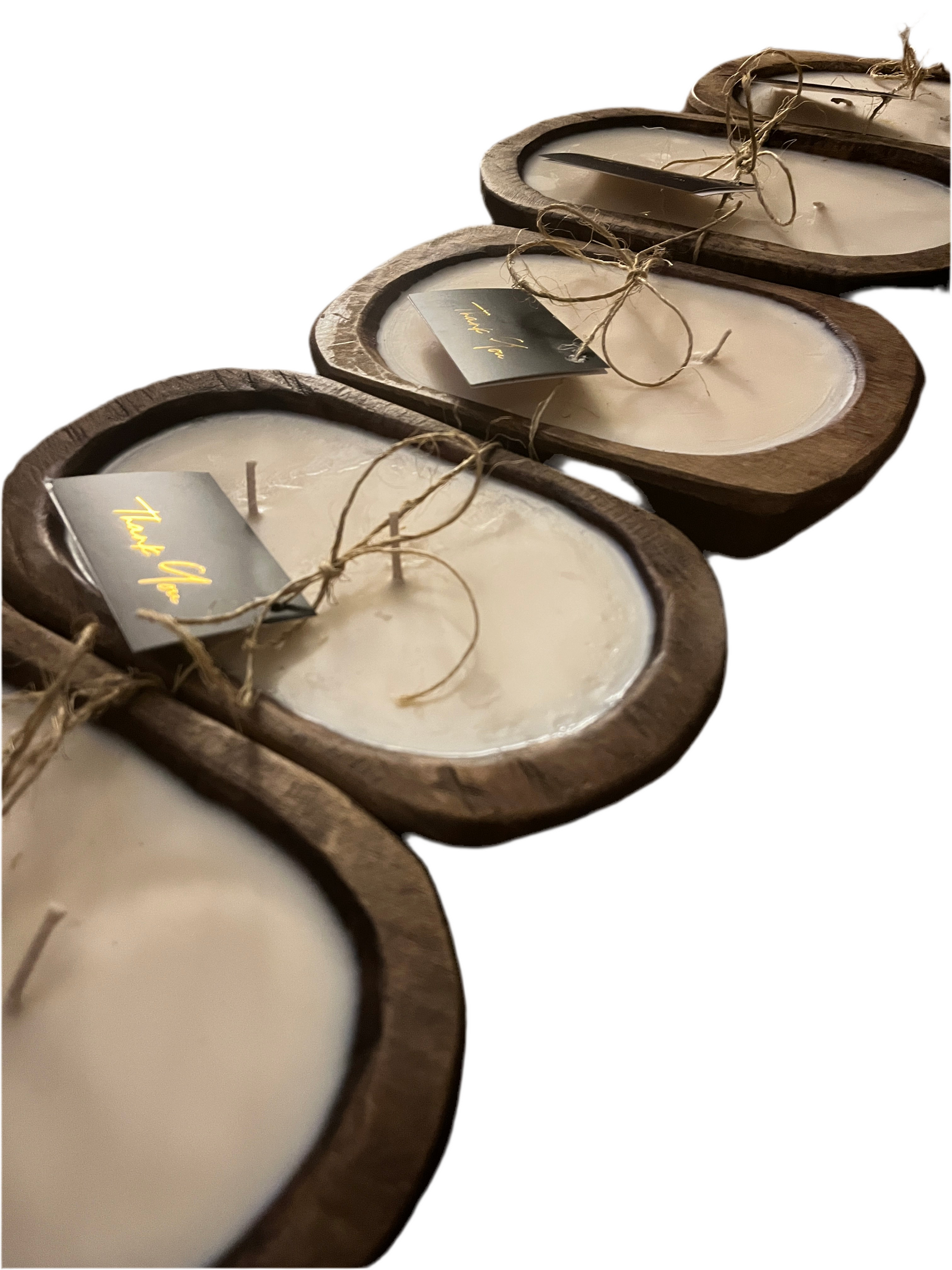 A beautiful Oak Wood hand carved bowl, made here in the USA, filled with 100% Soy Wax and scented with clean oils! Choose your scent and have it made and shipped straight to your door! These hold 3 wicks, 22 oz of wax and last approximately 45 hours.